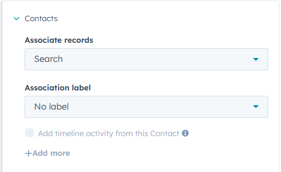 Note: To establish an association between the deal and another existing record, the user may accomplish this by selecting the desired record from the available options within the dropdown menu. Click on “+Add more” to associate with multiple companies. -