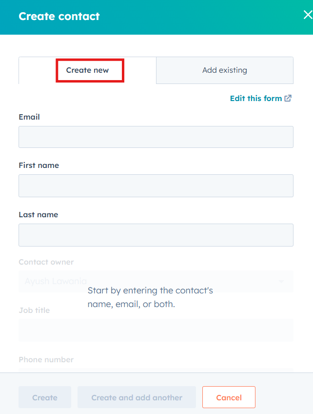 Populate Deal fields in the form and once entered click “Create” to create the deal or click on “Create and add another” to add more deals.