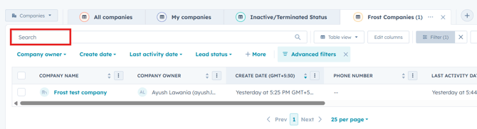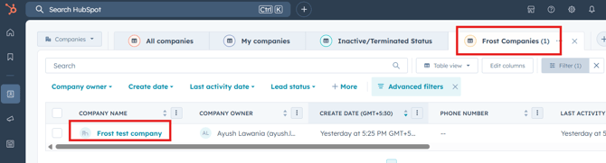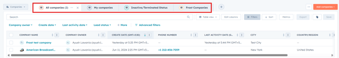 Frost Companies: This view will display all the companies under Frost pipeline.