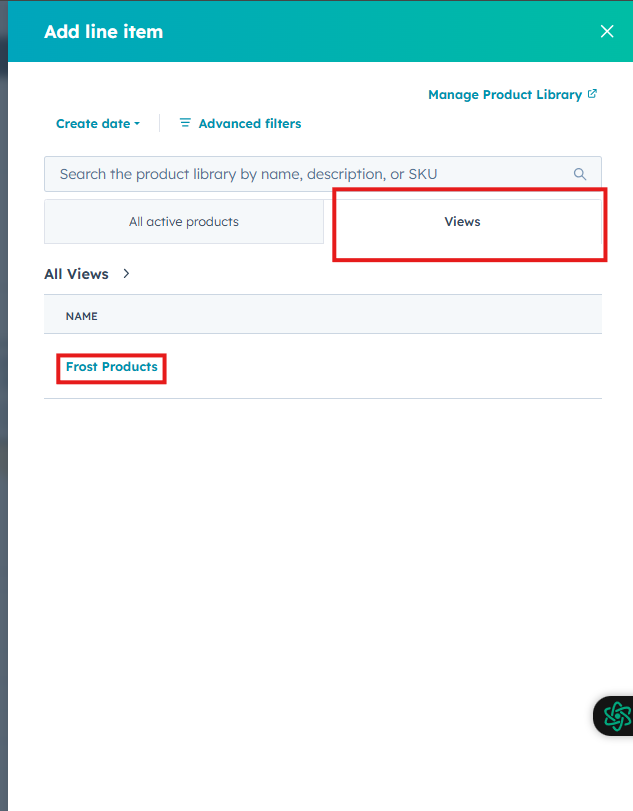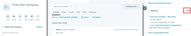 Select “Frost Companies” view and select the company or search for the company you would like to associate the deal with.