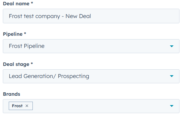 Associate deal with (This is optional, Company record must pre-exist in HubSpot)