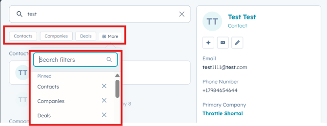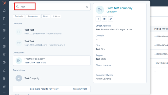 As you enter your search query, HubSpot will start displaying results in real-time based on your search criteria.