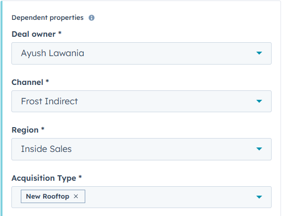 Dependent Properties: Fill out the dependent properties by selecting relevant options from the dropdown, this includes: