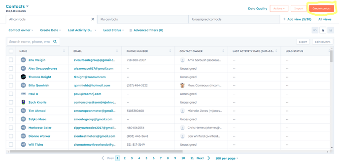 Click on the "Create contact" button located at the top right-hand corner to begin creating a new Contact.