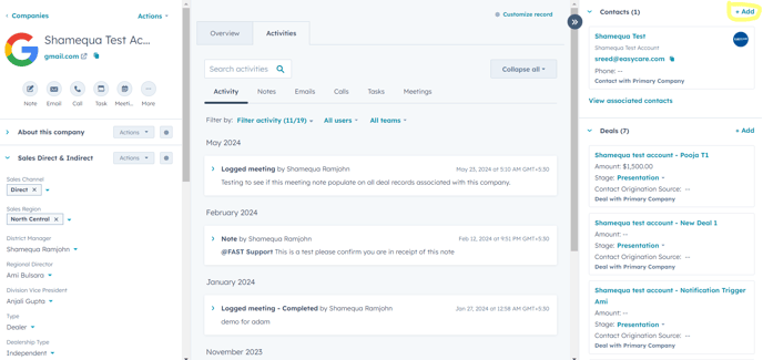 - Note: Existing contacts can be associated with multiple companies and deals.