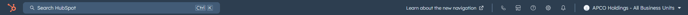 Search: The global search bar, used to search your entire HubSpot account for assets, tools, learning resources, and settings.