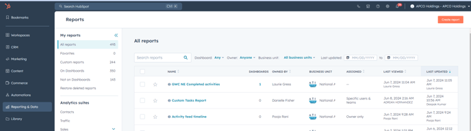 - In your HubSpot account, navigate to Reporting > Reports.