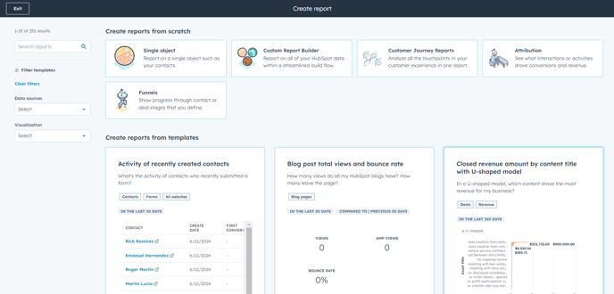 - Ignore the "Create reports from scratch" section at the top and scroll down to the "Create reports from templates" section to see if there's a Report close to what you want to start from.