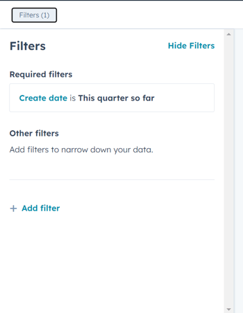 - The preview's right panel displays the "Filters" section with existing options and the ability to add more filters by clicking on "+ Add filter" at the bottom. This opens a search bar for fields related to the Object(s) in the Report. Further details about these filters will be discussed shortly.