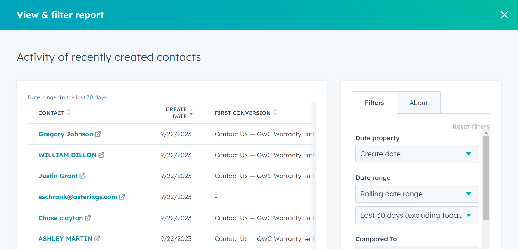 - If you filter by Date field, you're prompted to either choose from a preset list of relative dates, e.g. "This calendar year" or "Last 7 days", or enter a specific date range, e.g. using "is after" and "is before" to lock in just those results. As with any field, "is known" and "is unknown" is a True/ False filter that checks if the field is blank.